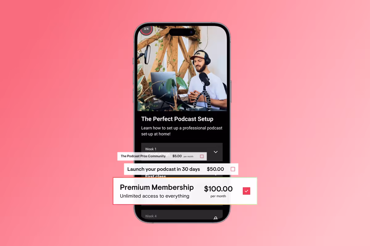 • Native mobile app and web: Push notifications, offline playback, and in-app community are first-class features on relevant plans in the Passion.io features.